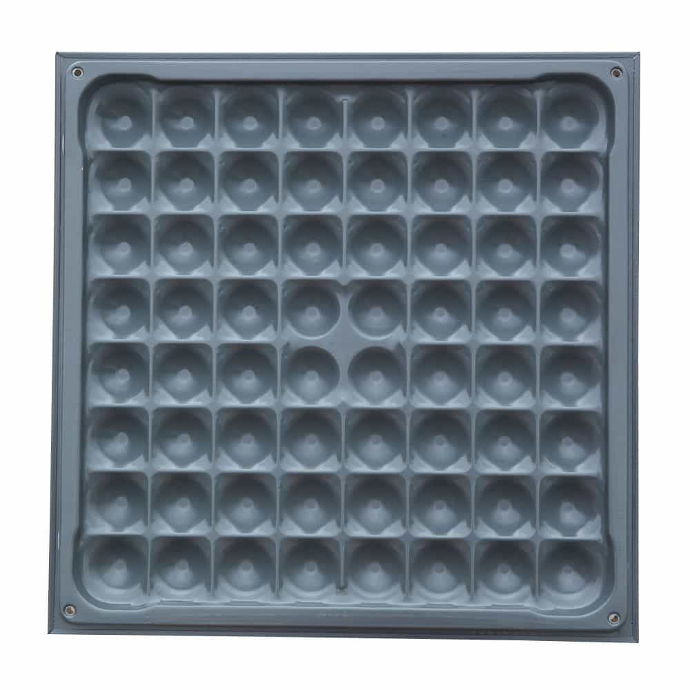 OA600網(wǎng)絡(luò)架空地板采用鋼板經(jīng)拉伸成型、點(diǎn)焊、外表經(jīng)防銹處理后進(jìn)行靜電粉末噴涂處理,內(nèi)腔填充發(fā)泡水泥,四角帶有角鎖孔。支架為冷軋帶鋼鋼板及鑄鋁合金鋁頭組成,可調(diào)節(jié)升降高度。由于智能化樓宇配線復(fù)雜,功能齊全,故出線口較多。