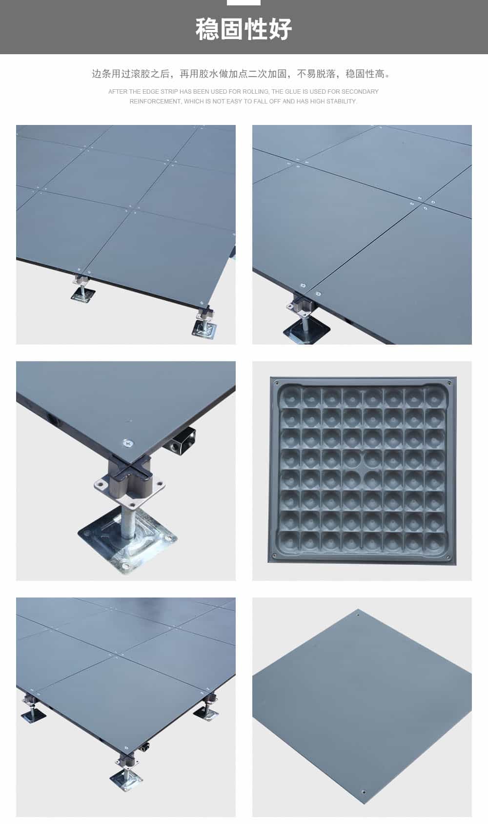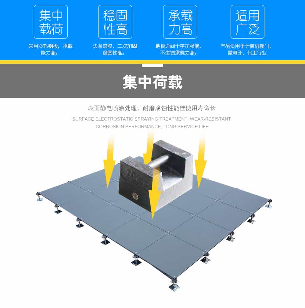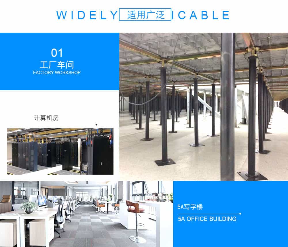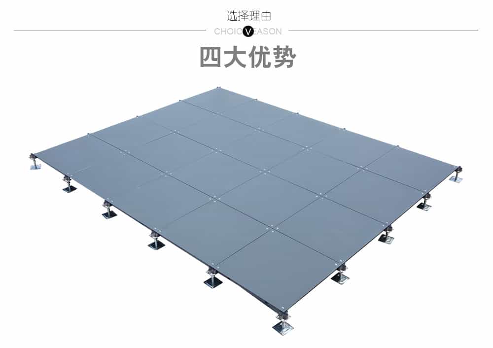 該地板可以選配帶出線口的配置,可根據(jù)要求任意添加線槽布線更具靈活性。此地板可以將強(qiáng)、弱電分開隔離,同時(shí)也便于檢修。安裝采用無(wú)梁角鎖,具有牢靠、穩(wěn)定、調(diào)平、簡(jiǎn)便之特點(diǎn)。