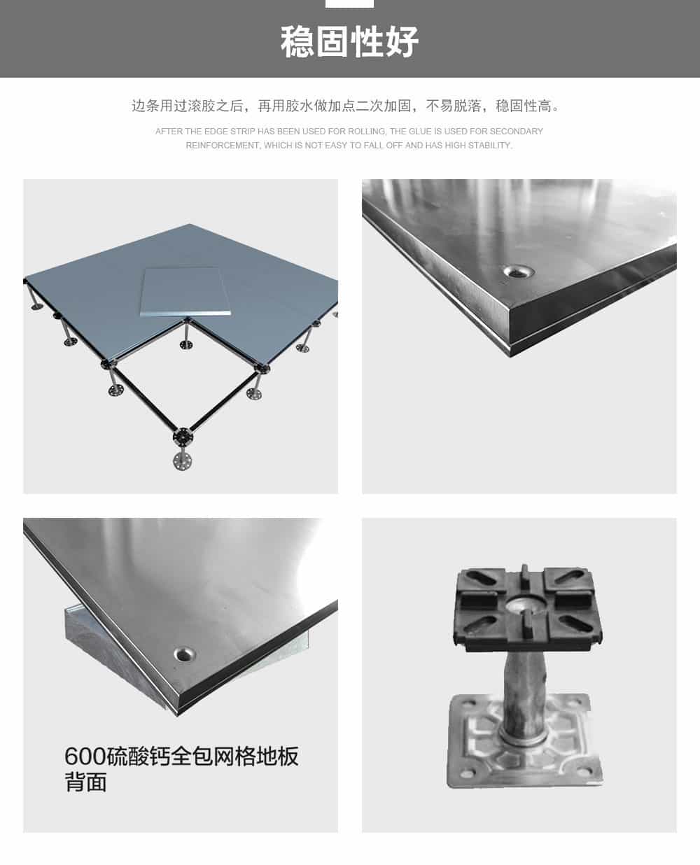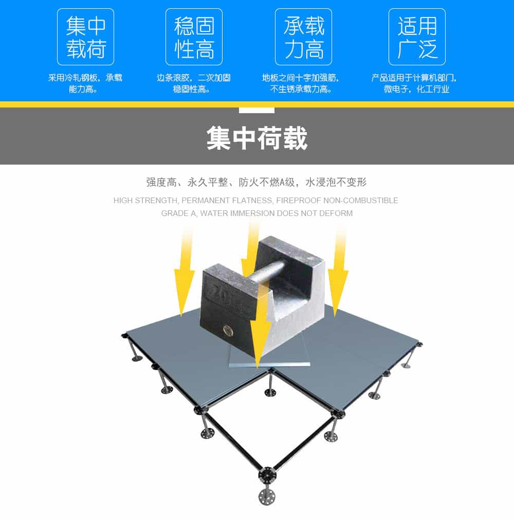 “遠(yuǎn)川”牌硫酸鈣網(wǎng)絡(luò)地板采用硫酸鈣為基材,板芯六面均用鍍鋅板包合而成,地板不易受潮,不易變形,耐燃燒時(shí)間更長(zhǎng),使用壽命長(zhǎng),安裝好的地板下面形成通路,方便下面地板走線,線路檢修。地板無(wú)需除油磷化噴塑,平整度好、邊不反翹,環(huán)保、強(qiáng)度大,密封性及穩(wěn)定性好。